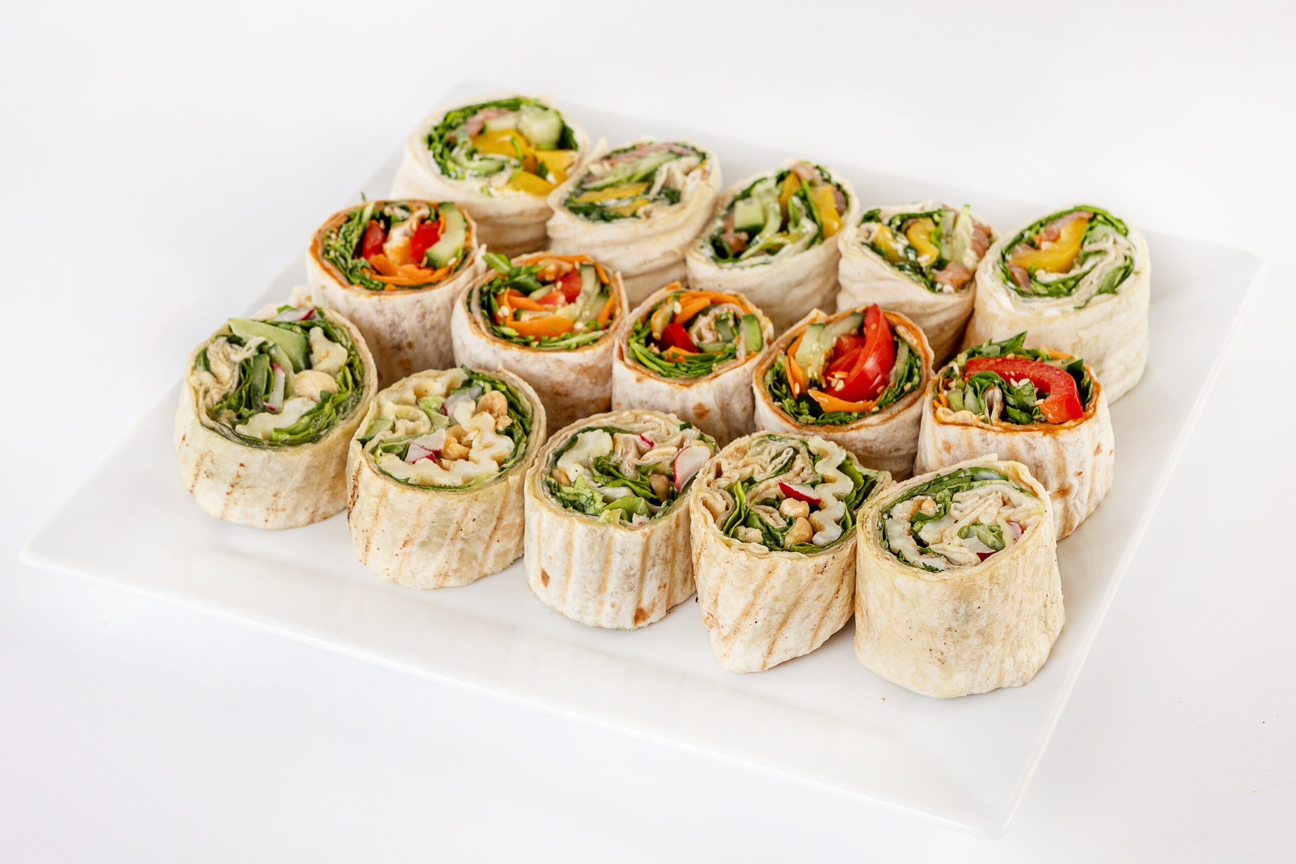 5 x Rollsy z grillowanym halloumi z pastą awokado, rzodkiewką, ogórkiem, orzeszkami ziemnymi i sałatą
